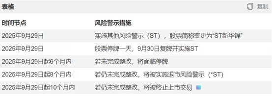 此前,青岛证监局已披露新华锦集团及其关联方非经营性占用公司资金达4.06亿元,要求六个月内归还。但截至9月下旬,控股股东及关联方未清偿分文,连续两份零进展公告直接触碰《上海证券交易所股票上市规则》红线,最终导致公司股票被实施其他风险警示。