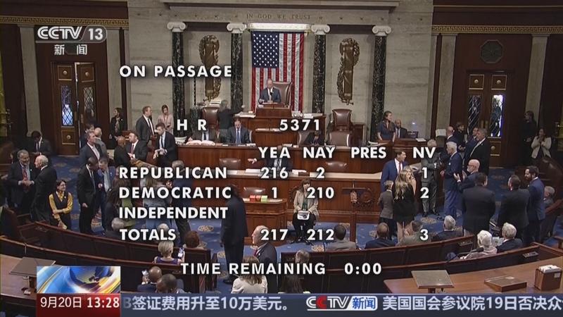 美国众议院于今年 9 月 19 日以 217 票赞成、212 票反对的投票结果通过一项临时拨款法案。