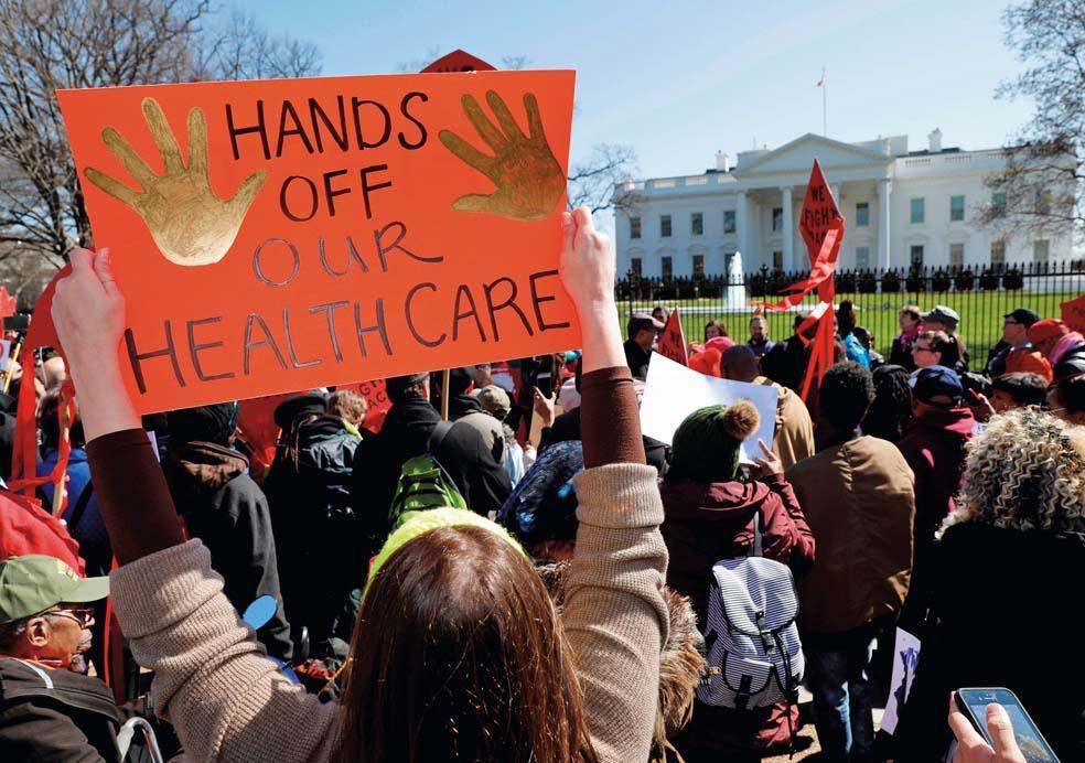2017 年 3 月 23 日,抗议者在白宫外示威,反对特朗普结束 " 奥巴马医改 " 的计划。