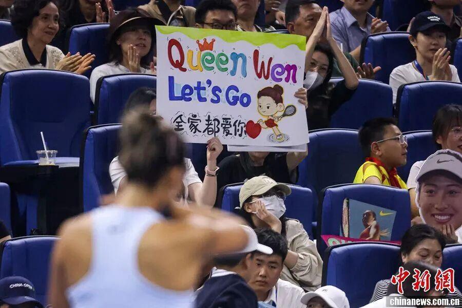 球迷亮出支持郑钦文的标语。中新网记者 徐峻杰 摄