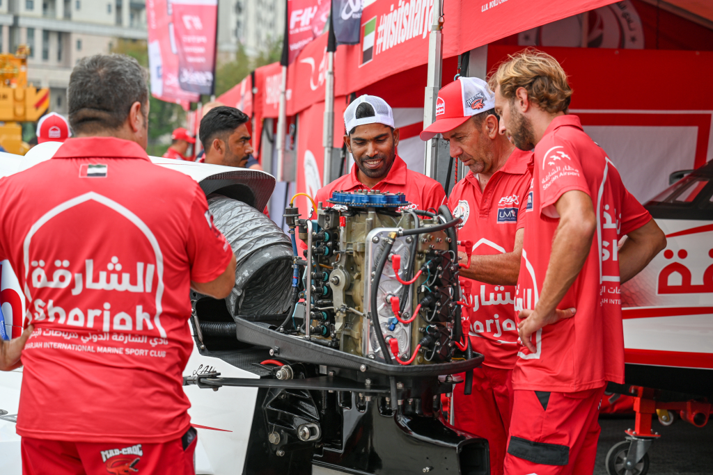 获得世界F1H2O摩托艇锦标赛年度总冠军三连冠的中国天荣F1H2O摩托艇队。澎湃新闻记者 朱伟辉 图