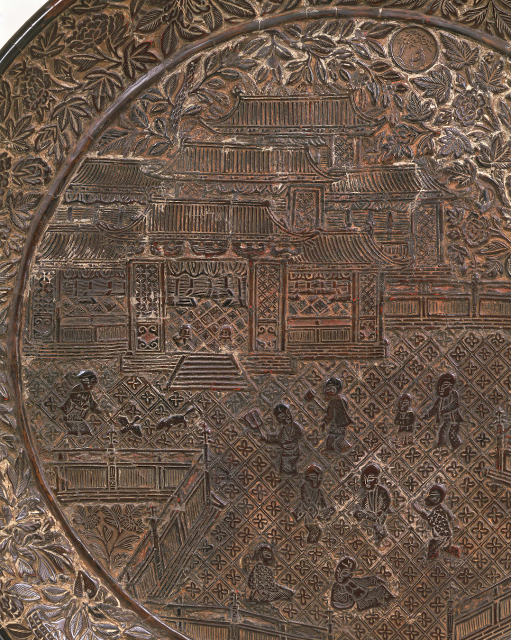 剔黑楼阁人物图圆盘