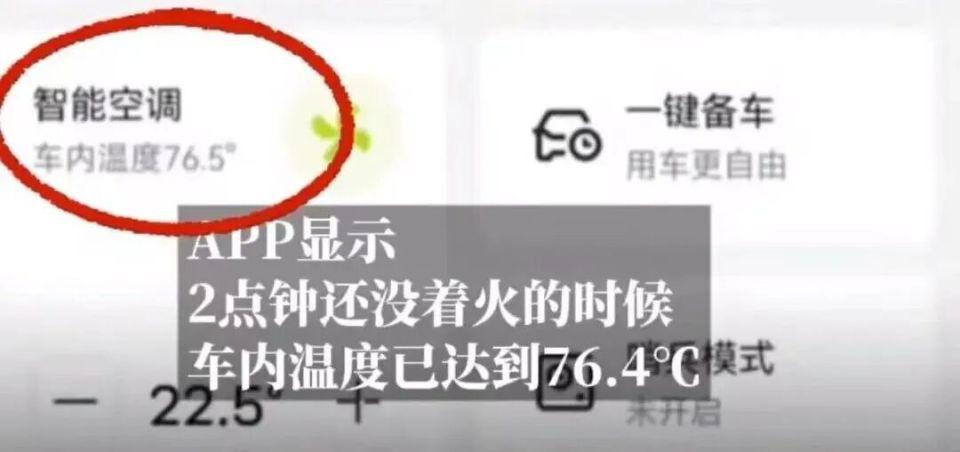 从视频上来看,阿维塔起火时最初是从副驾驶冒出烟,APP 显示,2 点钟还没着火的时候,车内温度已达到 76.4 ℃。