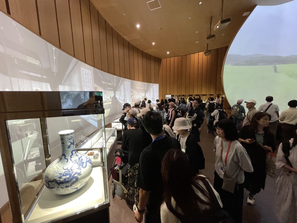 自展览开幕以来,在日本社会引发了热烈的反响。尽管需要排队入场,但观众热情不减。展柜前,常常能看到日本观众专注的神情,他们或俯身细察釉彩的微妙变化,或低声与同伴交流赞叹。一位喜爱中国传统文化的日本老者对澎湃新闻表示,他没想到在中国馆可以看到这么精美的瓷器展,“以前只是零星看过一些,康熙青花的力度,雍正粉彩的柔美,乾隆瓷器的精巧,层次如此分明,这完全颠覆了我过去对中国瓷器的印象。”