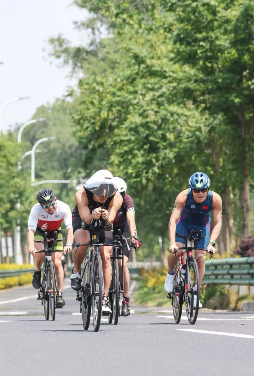 有 " 装备党 ",也有简装参赛者。Frank 是北京大学的博士后。在他看来,任何人都可以享受一场铁三比赛。普通参赛者可通过租赁自行车、使用日常训练装备降低成本。