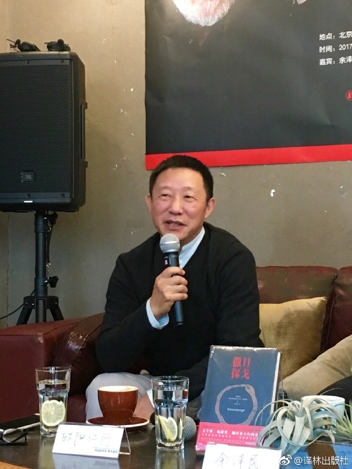 2017年,欧阳江河参加译林组织的《撒旦探戈》读书沙龙活动。