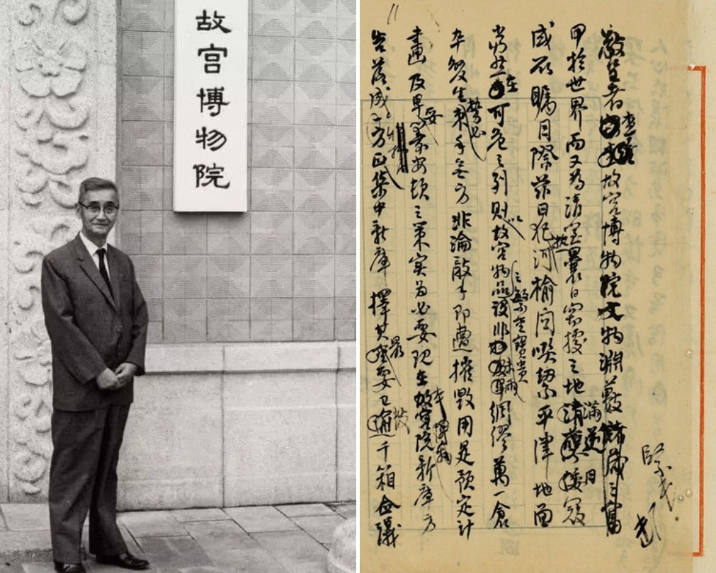 1932年,故宫博物院首任院长易培基(左图)向当时的“行政院”呈送文物南迁方案,右图为公文底稿。 故宫博物院 图