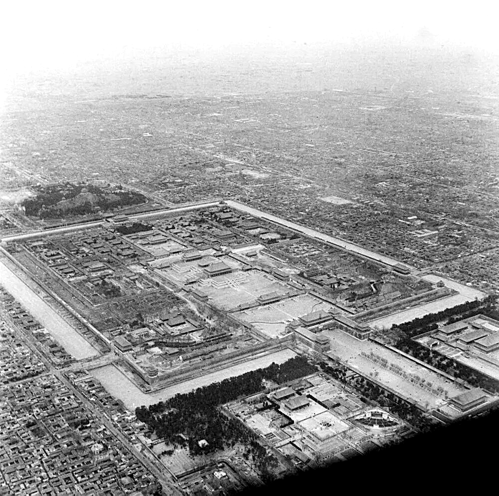 1952年3月8日,新中国第一批女飞行员飞越天安门上空接受祖国和人民的检阅,新华社摄影记者齐观山在飞机上拍摄的故宫全景。