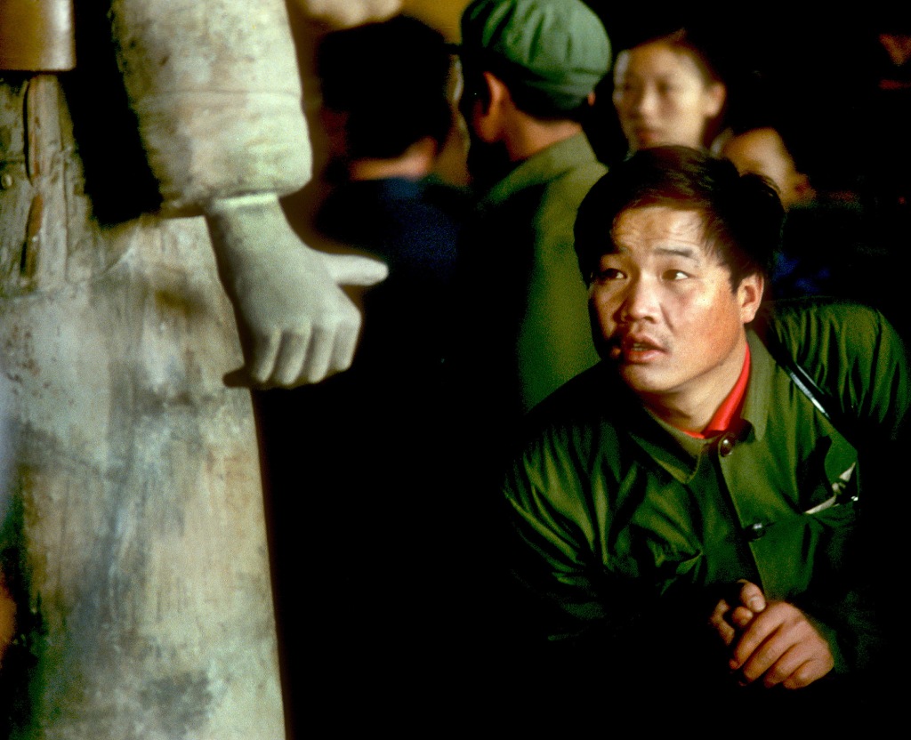 1980年4月,北京,故宫,一名男子正在认真地看文物。