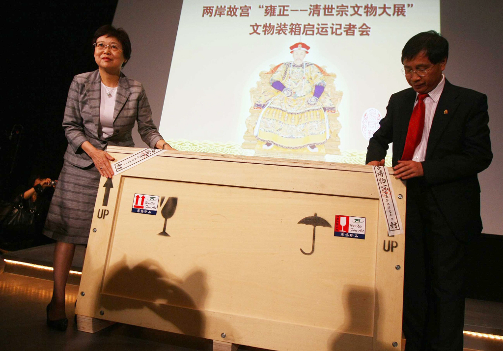 2009年9月22日,北京故宫博物院借给台北故宫博物院“雍正——清世宗文物大展”展出的37件套文物在北京故宫举行装箱仪式。时任台北故宫博物院副院长冯明珠和时任北京故宫博物院常务副院长李季贴封条。