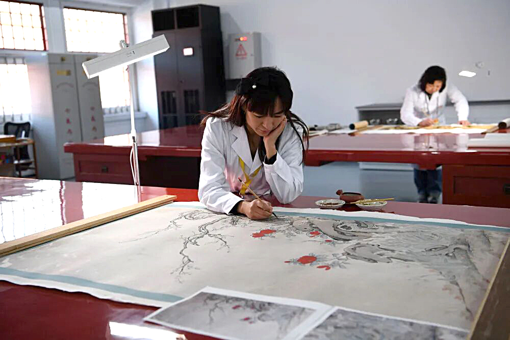 2016年,工作人员在故宫文物医院修复书画。金良快/新华社 图