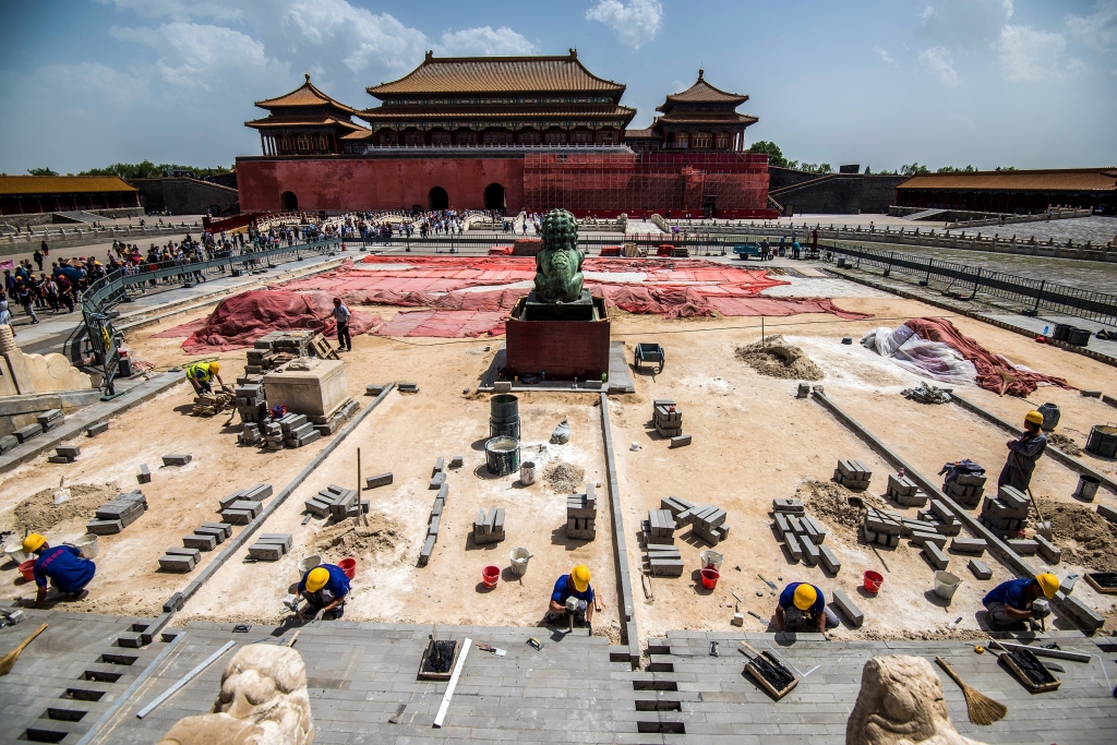 2018年5月,故宫博物院部分区域分时、分段、分块对古建筑进行修缮、修补,保护古建筑、保证游人安全。