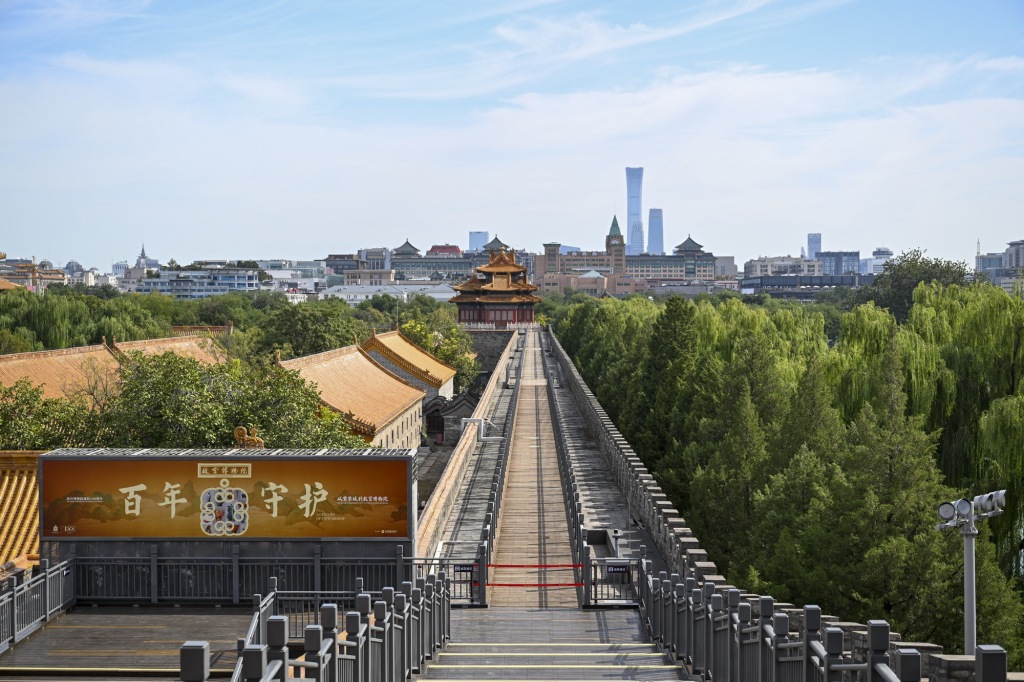 这是9月29日拍摄的故宫一角及展览海报(左下)。徐嘉懿/新华社 图