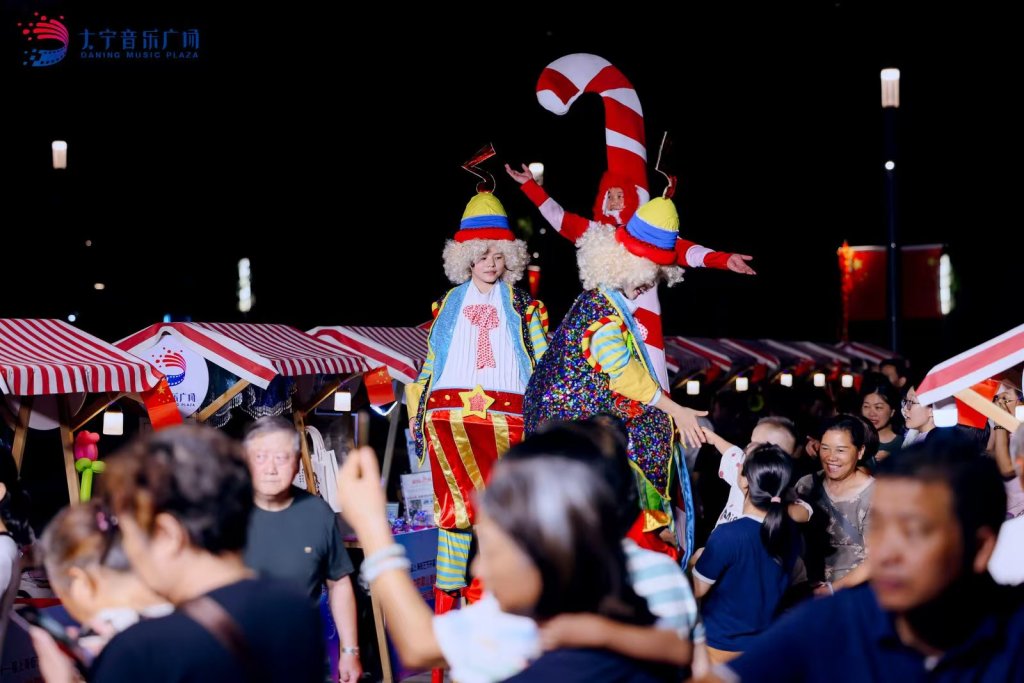 10月11日晚,在静安大宁音乐广场,街艺节的开幕演出给城市带来节日气息的现场体验。在落日余晖和人潮涌动中,节奏轻松的节目表演,点燃欢乐氛围,往来观众驻足,欣赏这独属于上海的城市氛围。