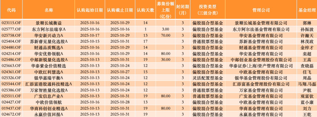 数据整理自:公募排排网,按认购起始日统计,统计周期为2025年10月13日至10月19日。