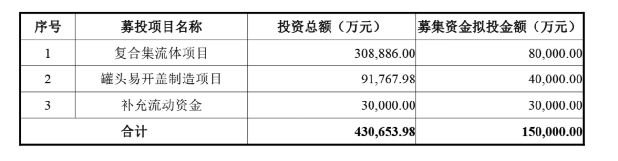 面对传统业务增长乏力、新能源业务进展缓慢、财务风险高企的多重压力,英联股份选择通过定增 “破局”。9月,公司发布定增预案,拟募资15亿元,分别用于复合集流体项目(8亿元)、罐头易开盖制造项目(4亿元)和补充流动资金(3亿元)。但界面新闻记者注意到,复合集流体项目与罐头易开盖制造项目合计投资金额高达40亿元,这意味着在 15亿元定增募资之外,公司还需自行筹措25亿元资金。