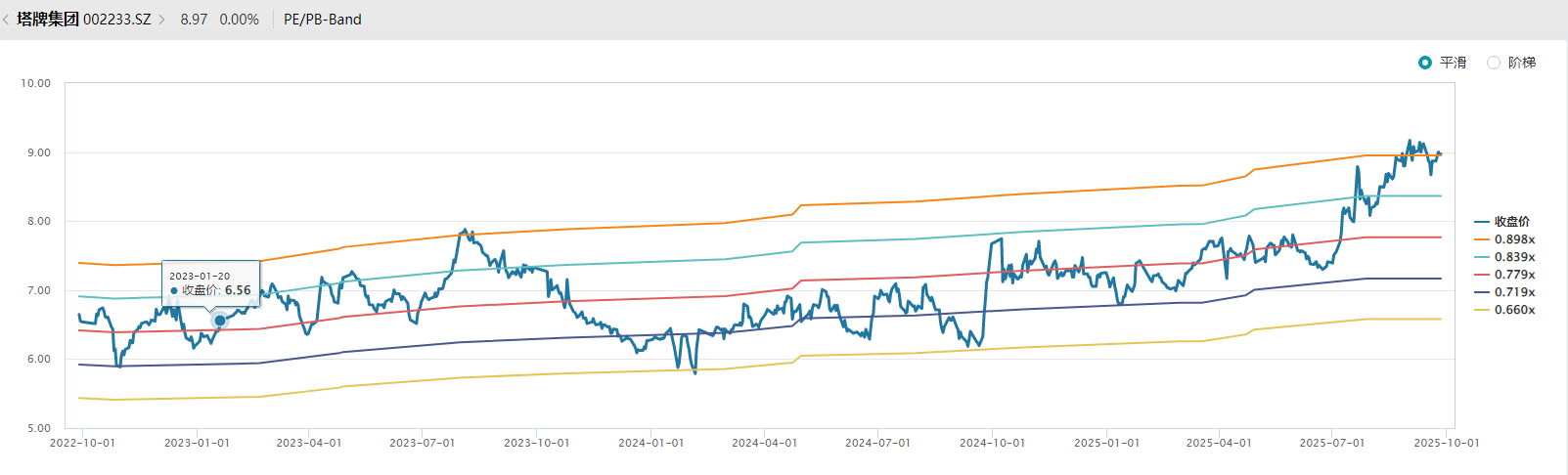 目前,塔牌集团市净率为0.9倍,在近三年中处于绝对高值。