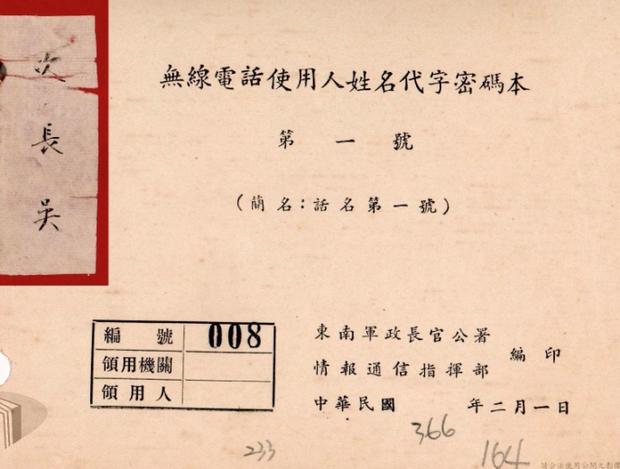 ▲吴石搜集的1950年国民党东南军政长官公署《无线电话使用人姓名代字密码本》