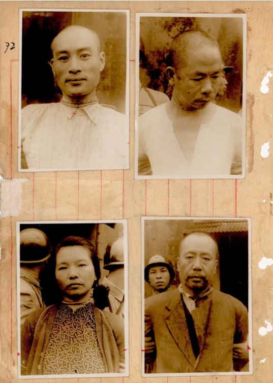 ▲1950年6月10日,吴石(右上)陈宝仓(右下)聂曦(左上)朱枫(左下)四烈士在台北马场町刑场被害前情形。