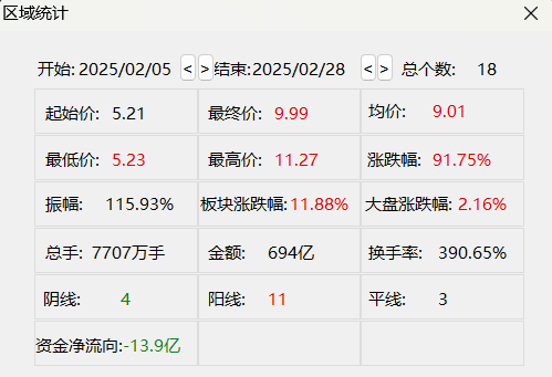 今年年初,该股均价维持在5元/股左右,成交额在1-4亿元左右徘徊,换手率也在1%-3%徘徊。到了2月初,该股股价出现久违的涨停板,成交量逐步放大,交投开始活跃。2月12日至2月28日之间的13个交易日,该股在每个交易日内的成交额均在40亿元以上,换手率均超过20%。