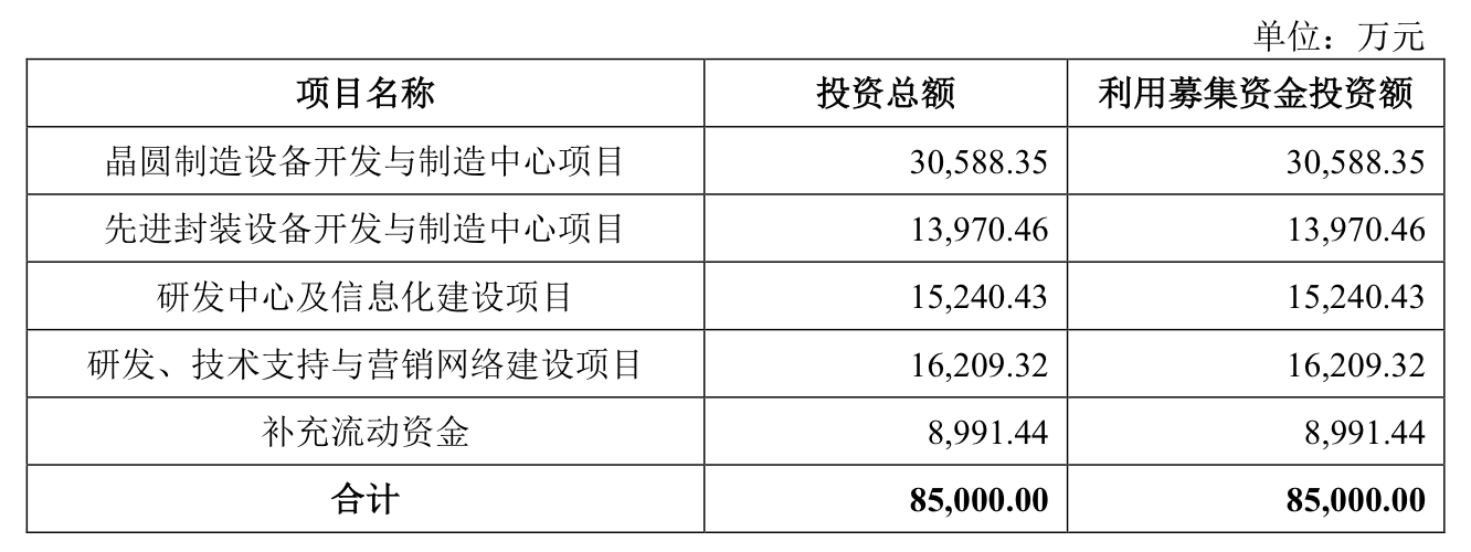 界面新闻留意到,上述募投规划中存在扩产类项目。其中“晶圆制造设备开发与制造中心项目”建设期3年,该项目计划通过新建现代化的生产基地,购置先进的硬件设备等对公司现有产品扩产,拟新增激光热处理设备产能32台。“先进封装设备开发与制造中心项目”则同样是对现有产品进行扩产,建设期3年,达产后能新增专用激光加工设备产能110台。