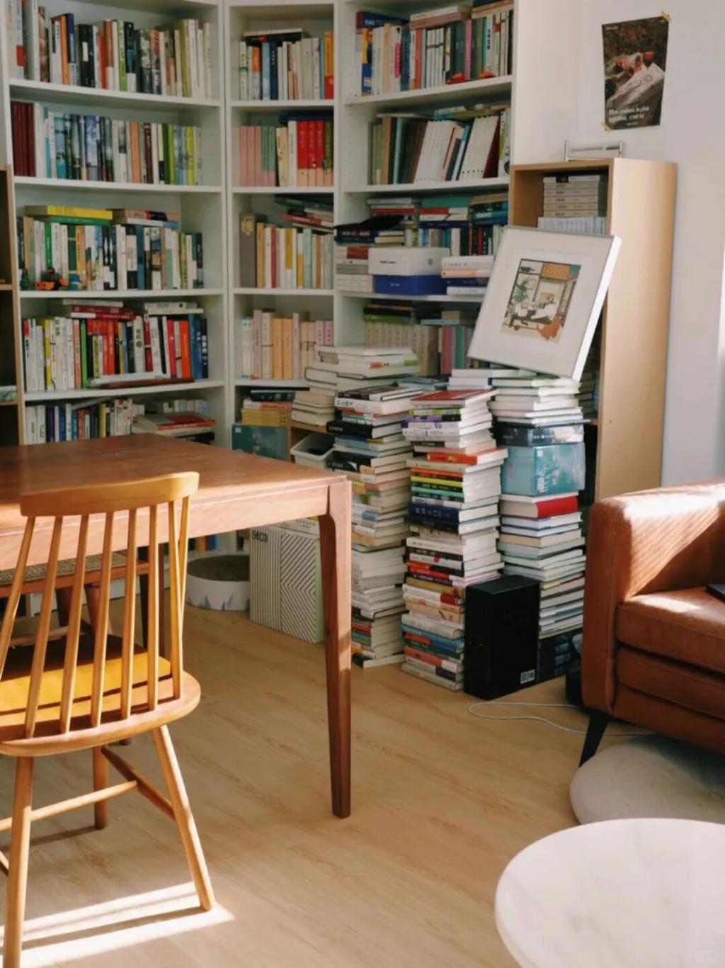 后来,房子越换越大,书也越来越多。如今,魏小河的藏书有 5000 多本,几乎整个家都成了书房。目前,他每年都要读 150 本书左右,出版了 5 本个人作品,他通过阅读和写作构建自己的生活。