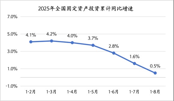 投资方面,国家统计局数据显示,今年前8个月固定资产投资累计增速为0.5%,比前7个月放缓1.1个百分点,降至年内新低。其中,不含电力的基建投资累计同比增速仅2.0%。