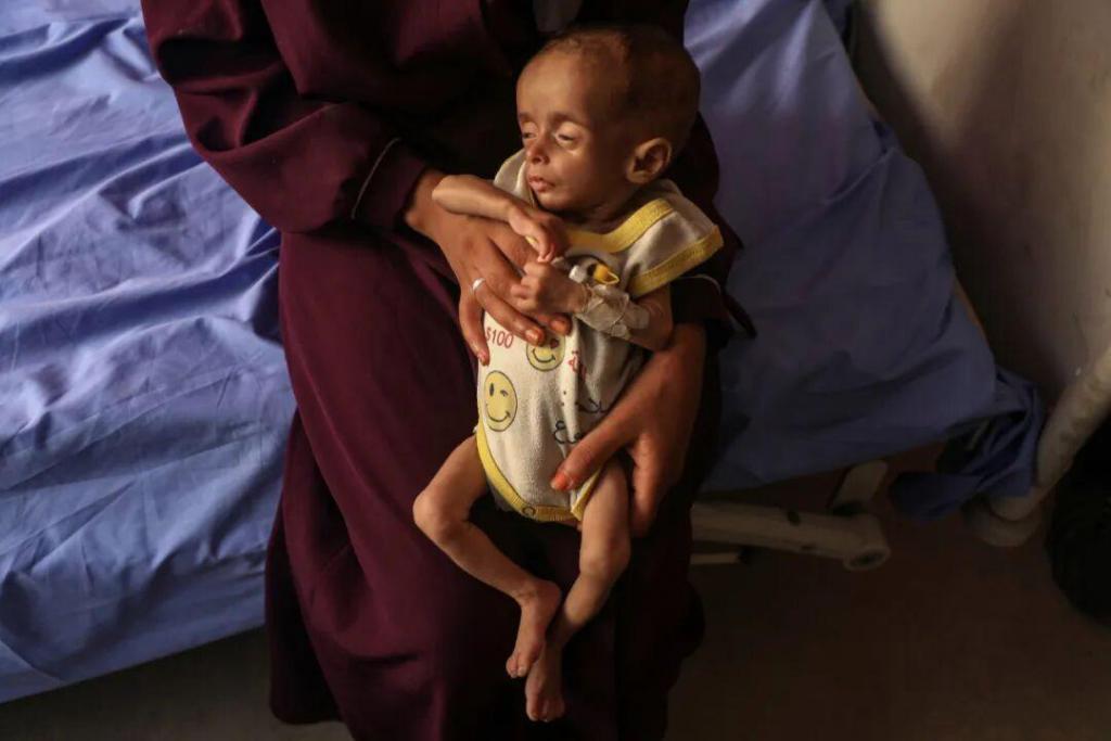 这是 7 月 23 日在加沙城一所医院里拍摄的营养不良的儿童。 新华社发(里泽克 · 阿卜杜勒贾瓦德摄)