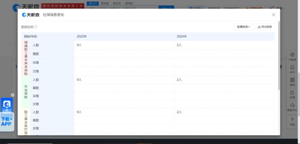 标的成立 3 年三方平台显示去年 2 人缴纳社保