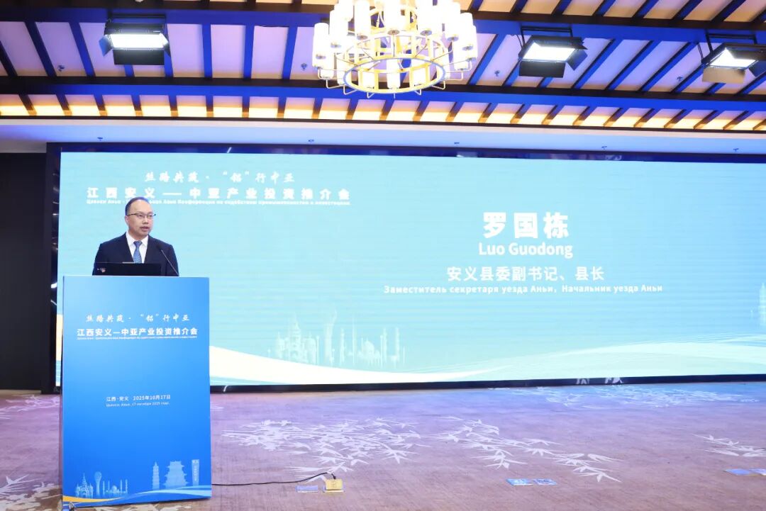 罗国栋在致辞中表示,江西安义—中亚产业投资推介会以“丝路”为桥,以“铝材”为媒,共聚“赣商故里、千年古县”安义,这份友谊跨越山海。安义是“中国铝材之乡”“中国门窗之乡”,拥有完备的铝型材全产业链集群,发展潜力无限。中亚地区特别是哈萨克斯坦资源丰富,市场广阔,双方优势互补性强。随着“一带一路”倡议纵深推进,双方产业和经贸合作必将迎来广阔天地。安义始终致力于营造市场化、法治化、国际化的一流营商环境,让大家放心投资、安心创业、顺心发展。希望双方以本次对接为契机,抢抓机遇,实现共赢发展。