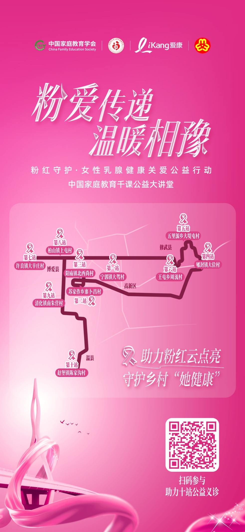 为关爱女性乳腺健康,2011年至今,爱康集团粉红守护十五载从未间断。这一次,粉红力量将在中原大地集结,通过十站公益义诊让健康零距离,用云点亮撑起乡村女性的健康未来。