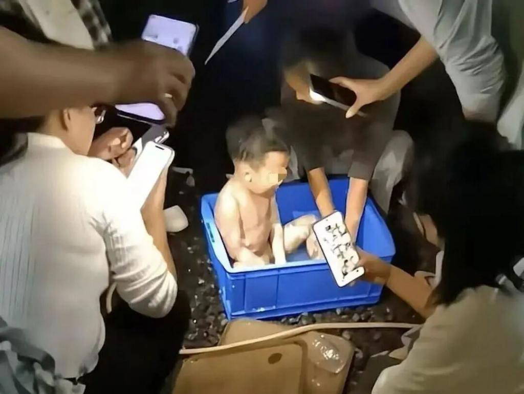 事发后,现场人员迅速为孩子降温