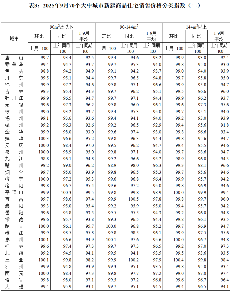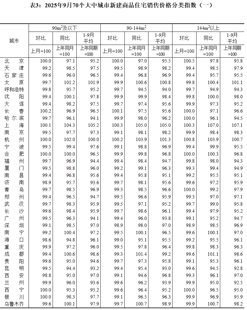 “金九”楼市数据出炉。10月20日,国家统计局发布9月份70个大中城市商品住宅销售价格变动情况。数据显示,9月份,70个大中城市中,各线城市商品住宅销售价格环比下降,同比降幅继续呈收窄态势。