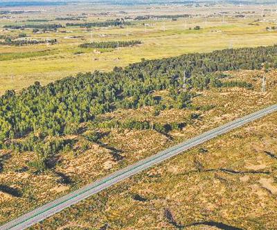 " 十四五 " 时期," 三北 " 工程攻坚战取得阶段性成效。图为内蒙古库布其沙漠北缘锁边林带。新华社记者 李志鹏摄