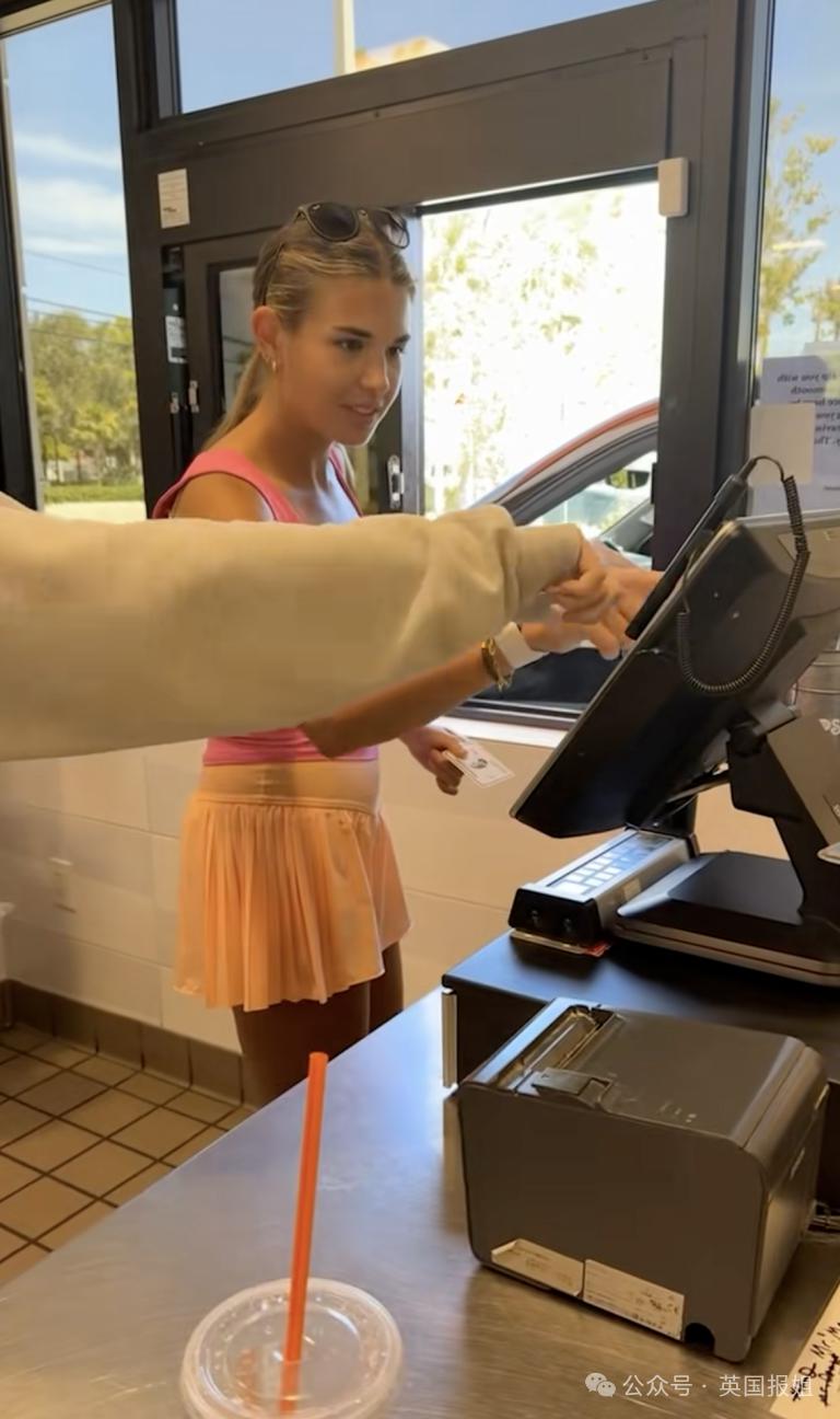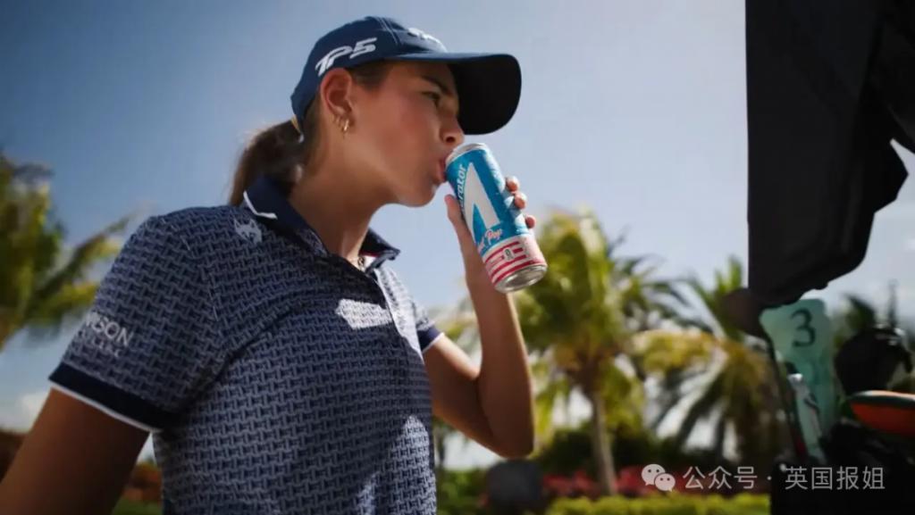 视频里她打完高尔夫后转身走向休息区,从运动饮料和健怡可乐中选择了前者,边喝边说—— " 对不起,爷爷 "。