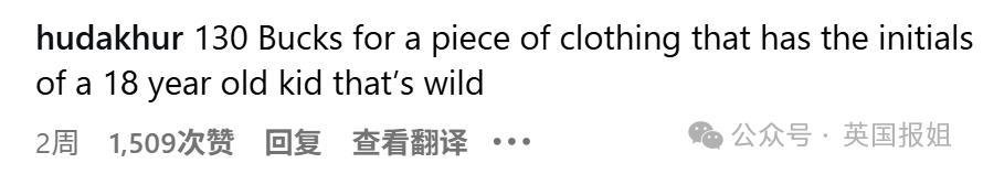 " 花 130 美元买一件上面印着 18 岁小孩儿姓名首字母的衣服 ... 现在年轻人要疯啊。"