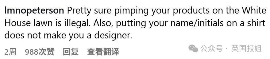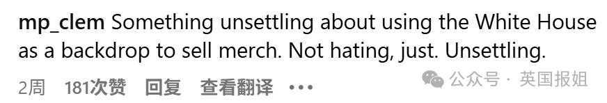 " 把白宫当作背景来卖自己商品,这事儿有点让人心里不得劲。倒也不是讨厌,就是觉得挺别扭的。"