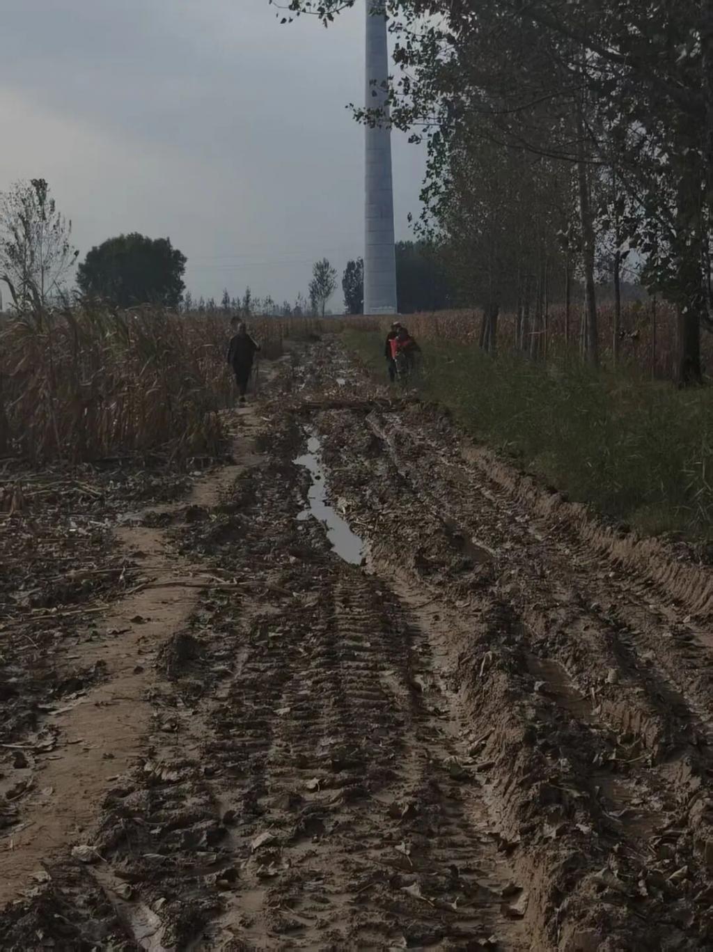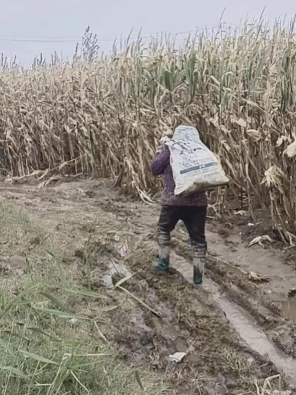 背着粮食走在泥泞地里的农民 / 受访者供图