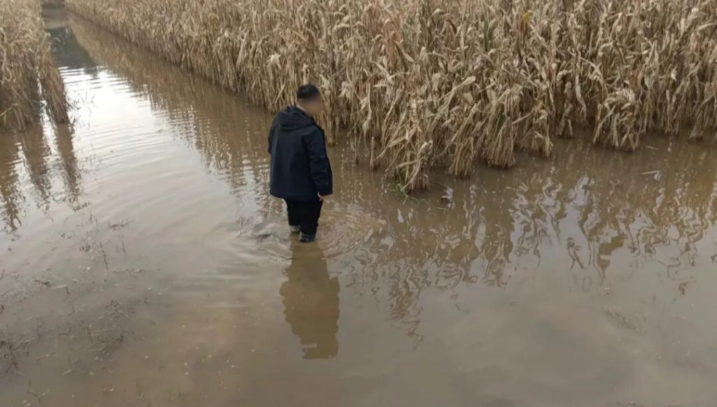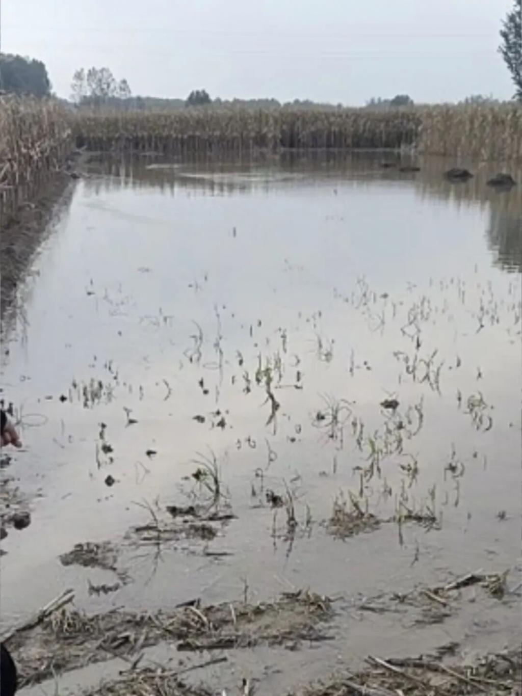 部分已经收割的玉米地中,积水较深 / 受访者供图