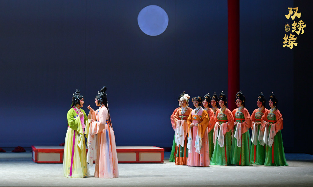 粤剧《双绣缘》以世界非遗粤剧为骨,以国家级非遗广绣为魂,通过双生双旦的叙事结构,将广绣技艺与粤剧程式融为一体,既有古典传奇机趣的延续,又有现代价值观念的传递,在唯美纯净精巧的舞台观演体验中呈现出新质的审美元素。