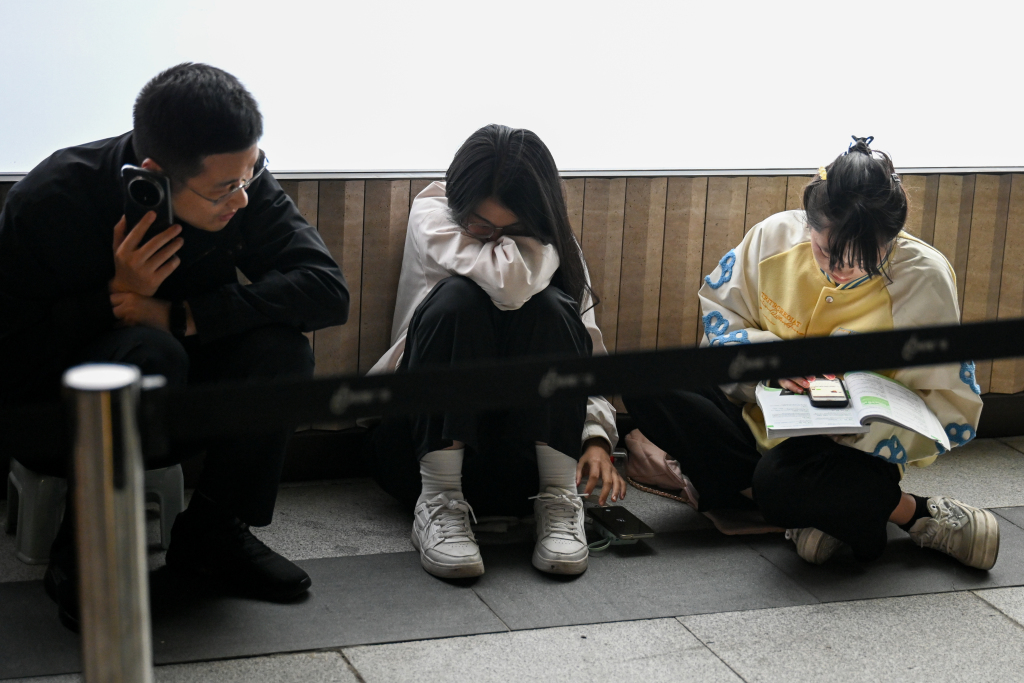 10月24日深夜,上海,排队等候的顾客带着书和手机打发时间。澎湃新闻记者 朱伟辉 图