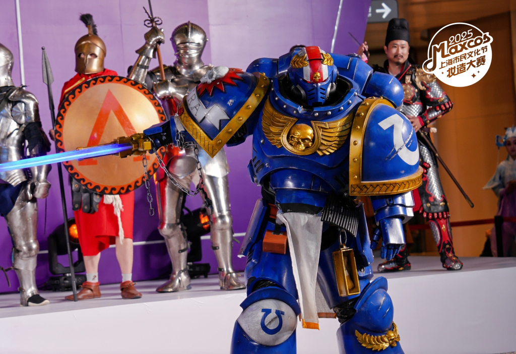 “最佳道具奖”获得者张子捷是整场比赛中造型最醒目的参赛者。他穿着一身庞大的铠甲,装扮成游戏《战锤40K》中的英雄角色,整体造型有2米多高。