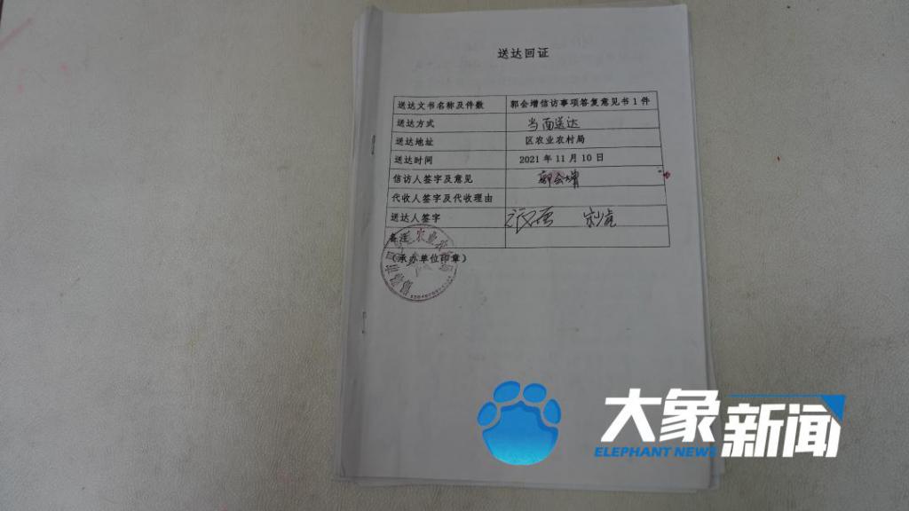 在位于肥乡区建设路的郭会增家,大象新闻记者看到他下载的厚厚一摞复印件,包括肥乡区农业农村局的《送达回证》《息诉罢访保证书》,以及肥乡区信访联席办的《请示报告》《干部回访意见书》,还有局、区、邯郸市的《信访事项化解情况报告》等。
