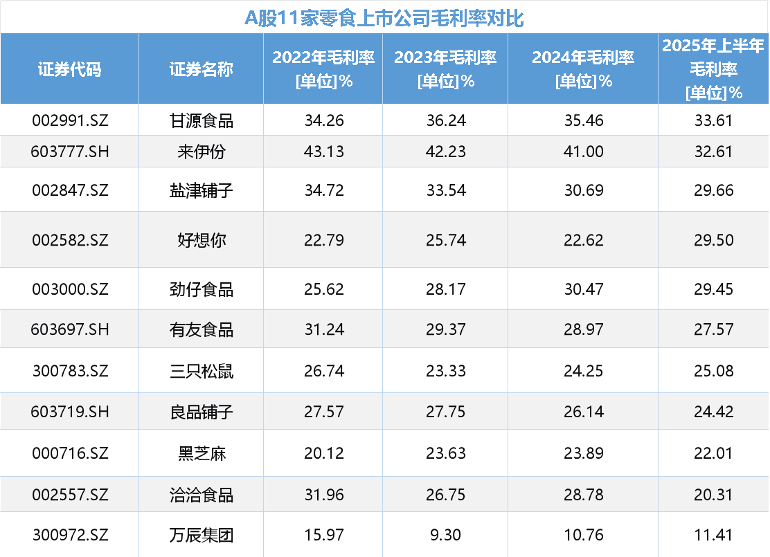 到了2025年上半年,金添动漫毛利率进一步上升至34.7%,同期11家零食上市公司毛利率均低于这一比重。