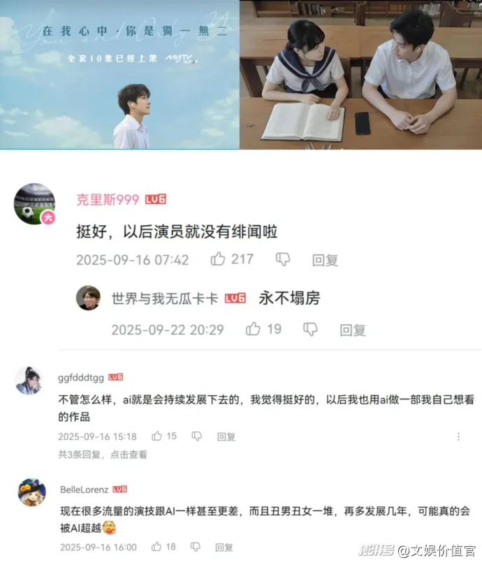 就连近年被唱衰的老牌电视台TVB,也在尝试通过AI真人短剧彰显“朝气”。今年9月,“TVB首部真人短剧”《在我心中,你是独一无二》上线,内容定位为校园青春剧。这部剧的场景的还原度,角色的仿真度获得了业界一致好评,“演员”的表情和动作栩栩如生,剧中的AI男主女主,还在中国香港地区开启了个人社交账号,与粉丝互动。