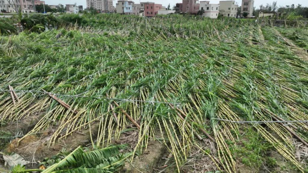 甘蔗、香蕉、菠萝苗、渔排、虾塘 …… 即便农民和渔民竭力做了防护,依旧是 " 一场风过去,什么都没有了 "。