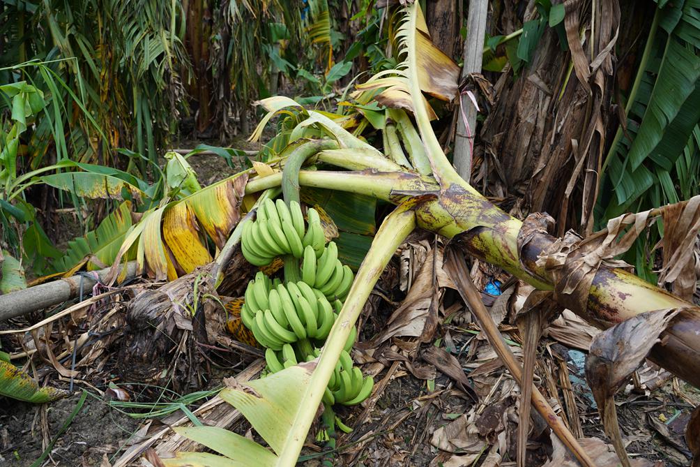 原本还有十几天,这些香蕉就可以收获了。正好赶上中秋国庆节,还想着可以卖个好价钱。现在只能开始漫长的清理工作,先清倒地的,再清没倒的,把树都砍掉,然后要等到明年,才能去开始护理新的香蕉苗。