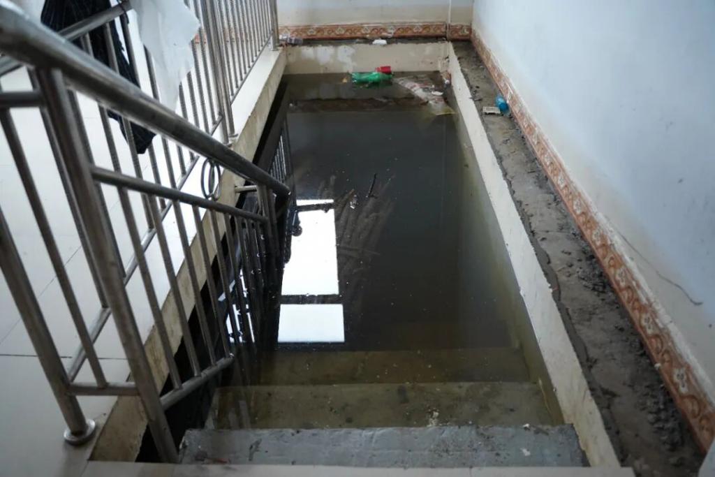 每次刮台风或是下暴雨,岛上都会积水。就算有晴天,可能也要十天、半个月处于积水的状态。很多村民自己买了水管,排漫进家里的水。这个问题已经困扰岛民好几年了。
