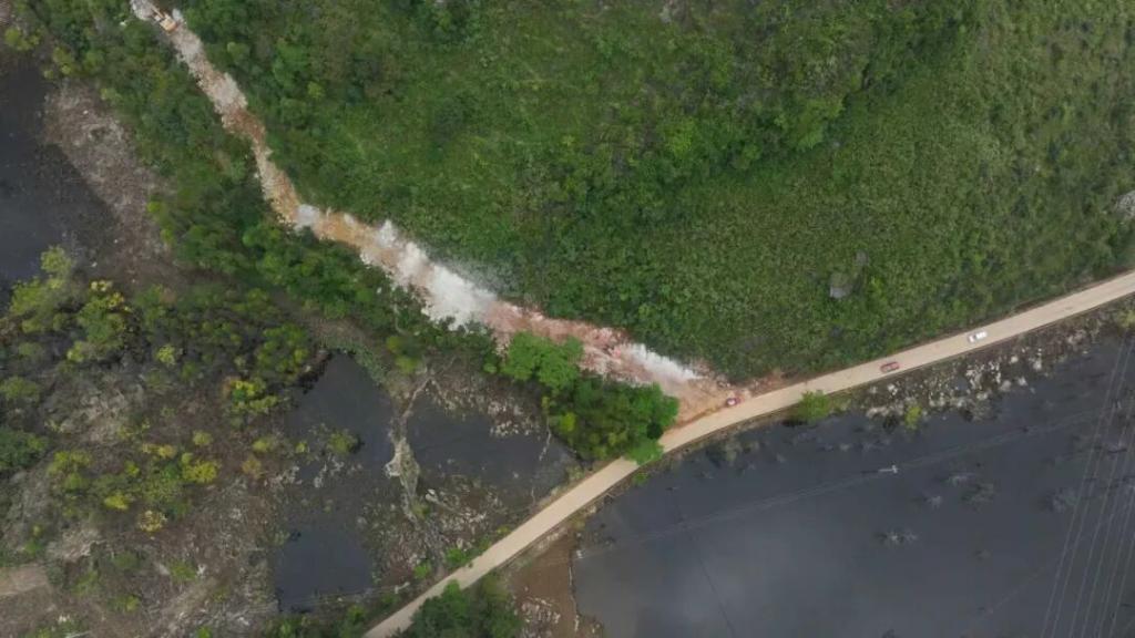 ● 10 月 26 日,百色市靖西市魁圩乡多油屯,积水情况仍十分严重。