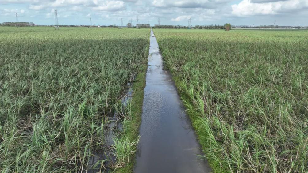 ●湛江遂溪北坡镇甘蔗地排水不畅,乡间小路变成了小河。
